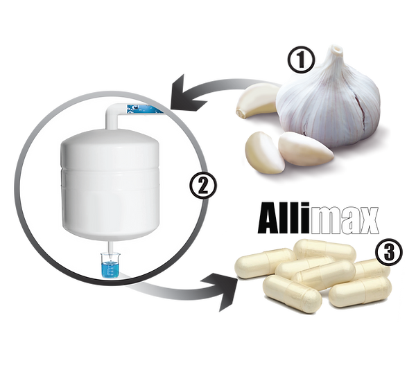 Allimax is made in the same way that allicin from fresh garlic is formed.